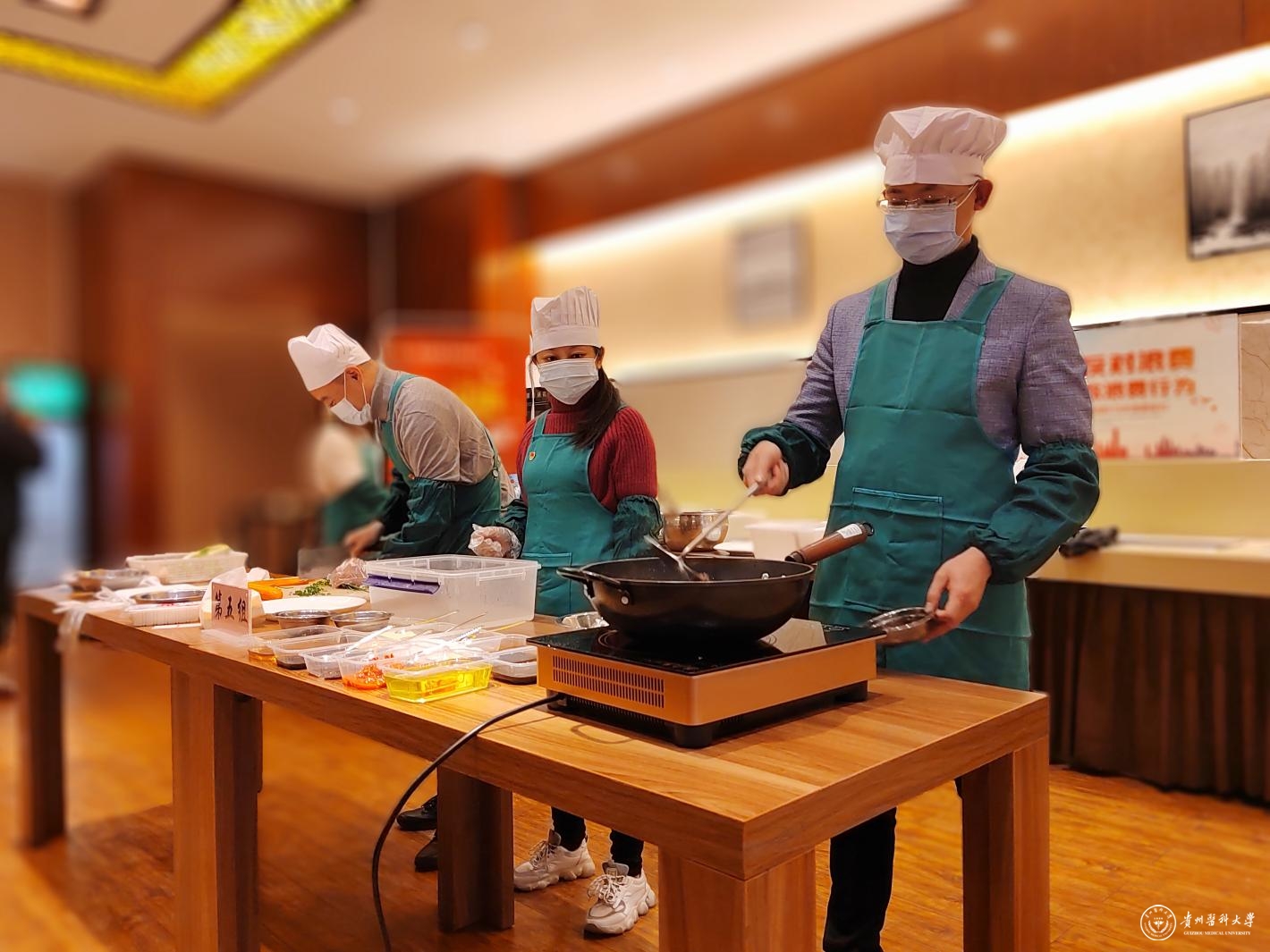 为开展好此次厨艺比赛,活动前,双方进行了多次沟通协商,拟定了活动方案,饮食中心精心布置了活动场所、准备了参赛物品。比赛开始,各组参赛选手卯足了劲,使出了各自的看家本领,手法娴熟地选材、切菜、炒菜、装盘,有条不紊地进行着每一道程序,在一阵阵菜香味与此起彼伏的锅铲碰撞声、围观师生喝彩声、说笑声过后,一道道色鲜味美、香气扑鼻的菜肴陆续摆到了评委们的面前,“小葱拌豆腐”“红烧鸡翅”“山药炒木耳”“菊花豆腐羹”“鱼头豆腐汤”“糟辣炒鸡蛋”等不仅色香味俱全、营养丰富,而且寓意了共产党员一清二白、两袖清风、清正廉洁的崇高品格。经过评委们的品尝和打分后,最终评出了一二三等奖各一组。