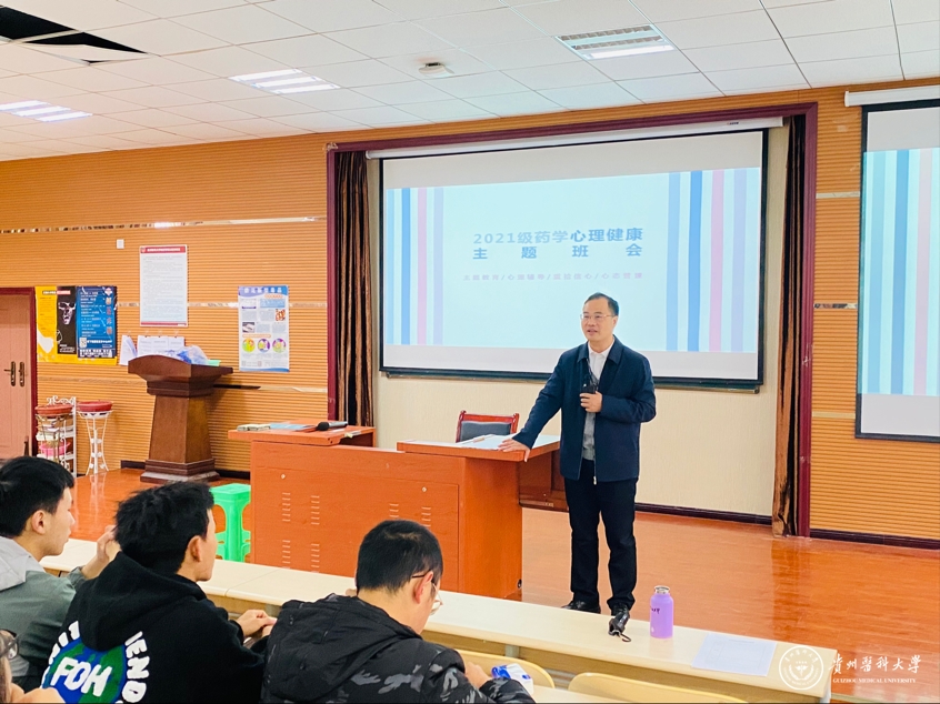 11月17日,副校长沈祥春到药学院参加2021级药学班心理健康主题班会。