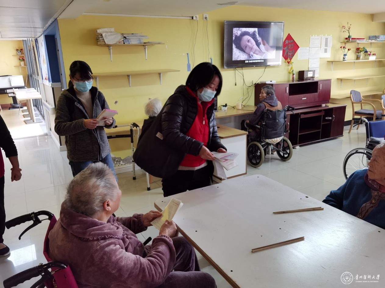 罗俊对服务中心的热情接待表示感谢,对服务中心的老年服务工作给予肯定,对服务中心的老人们的幸福晚年满心祝福,同时简要介绍了致公党贵州省委、致公党beat365正版唯一官网必一总支部和beat365正版唯一官网必一的大致情况,讲述致公党beat365正版唯一官网必一总支部此行的主要目的和任务是老年病防治、老年保健科普宣讲、义诊、查房,并赠送部分常用药品及科普宣传资料。