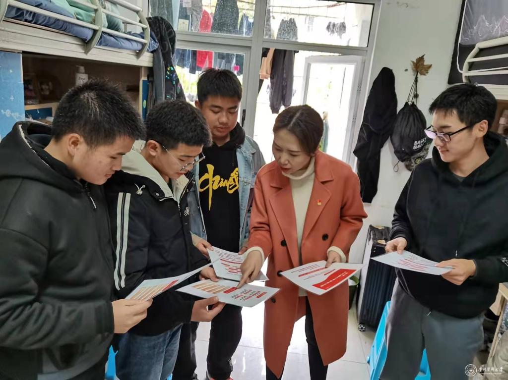 本次宣讲以宿舍为阵地,深入学生群体共同学习贯彻落实党的十九届六中全会精神。宣讲成员主动亮明党员身份表明来意,结合宣讲海报,从会议召开的时代背景、两个决、党的百年奋斗历程中取得的伟大成就、党的百年奋斗的五大历史意义等方面对党的十九届六中全会精神进行详细解读和阐释,分享学习心得,同时围绕大家关注的热点问题与同学们进行深入的交流互动。