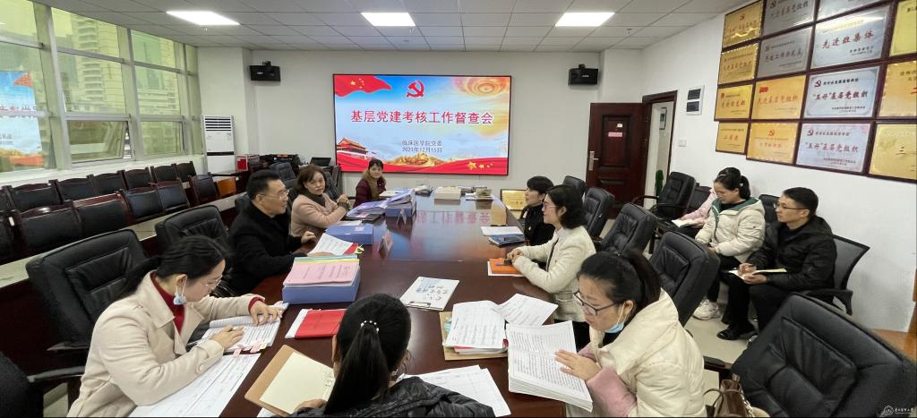 12月15日,医学人文学院正处级组织员韩贞习、医药卫生管理学院正处级组织员孙丽霞带队到我临床医学院进行基层党建考核督查工作。临床医学院党委副书记王筑山、副处级组织员马燕萍及各党支部书记参加督导会。