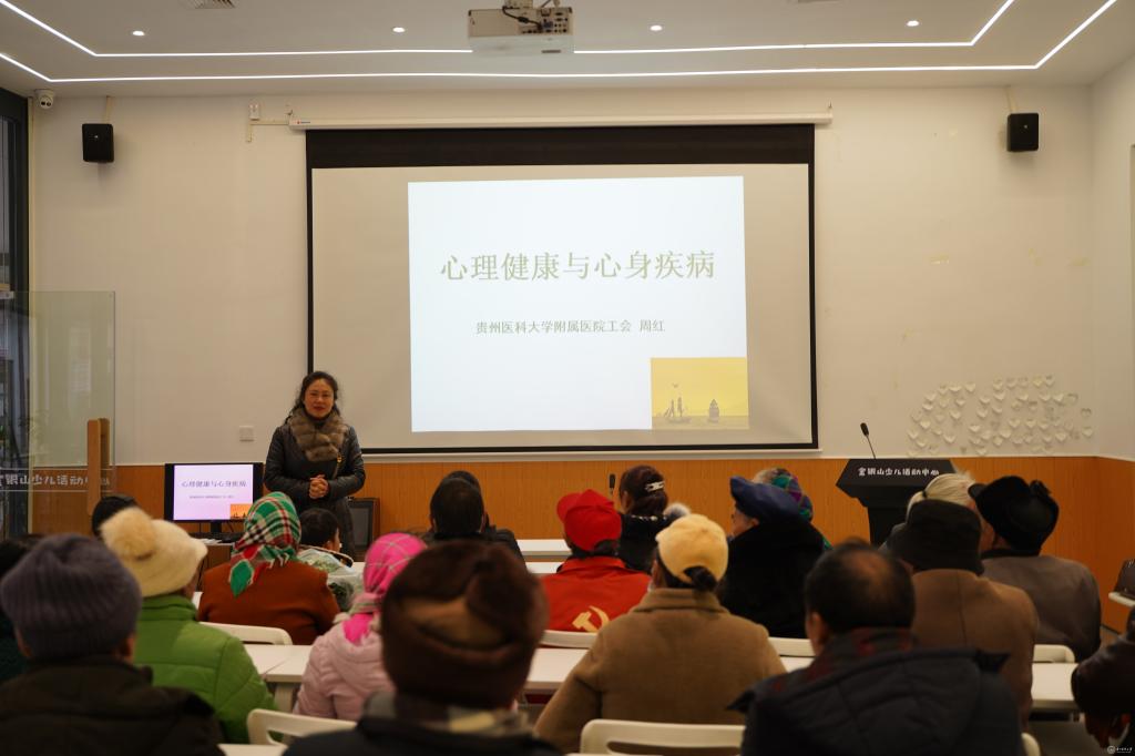 志愿服务队看望退役军人,为退役军人家庭授“支医助老 关爱老兵”家庭牌,并作一对一面诊。在银山社区开展免费的血型检测、司法鉴定咨询、禁毒宣传等活动;周红作“心理健康与心身疾病”讲座;组织观看红色影片《金刚川》。