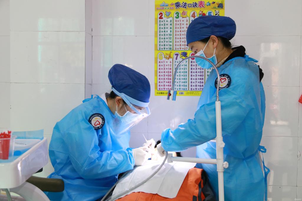 随后,口腔医院、兴义市人民医院、黔西南州人民医院的医护人员共同为贵州黔西南州聋哑学校150余名儿童开展了口腔义诊。三院工作人员精心准备了可移动牙椅、诊疗设备、药品等,细心为聋哑儿童进行了全面的口腔检查、全口涂氟,为口腔条件合适的适龄儿童开展窝沟封闭等龋齿预防措施,充分展现了三院医护人员的专业技能与人文关怀。