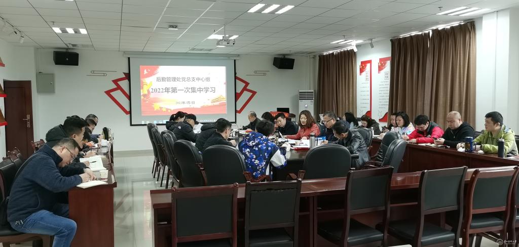 3月3日,后勤管理处党总支理论学习中心组在南校区颂雅楼五楼后勤会议室召开2022年第一次集中学习,全体党员参加。党总支书记张玲玲主持。