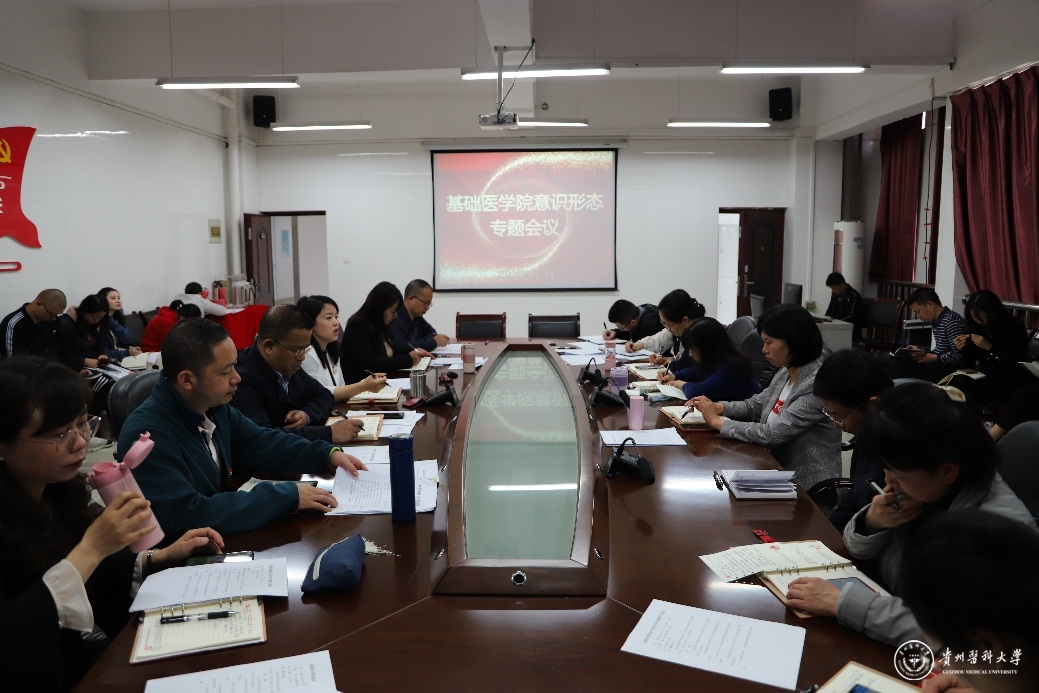 5月7日,基础医学院在务本楼会议室召开2022年上半年意识形态工作专题会。学院党政领导班子,行政科室全体人员、教研室(实验室)负责人、党支部书记、辅导员参会。会议由党委副书记张贤主持。