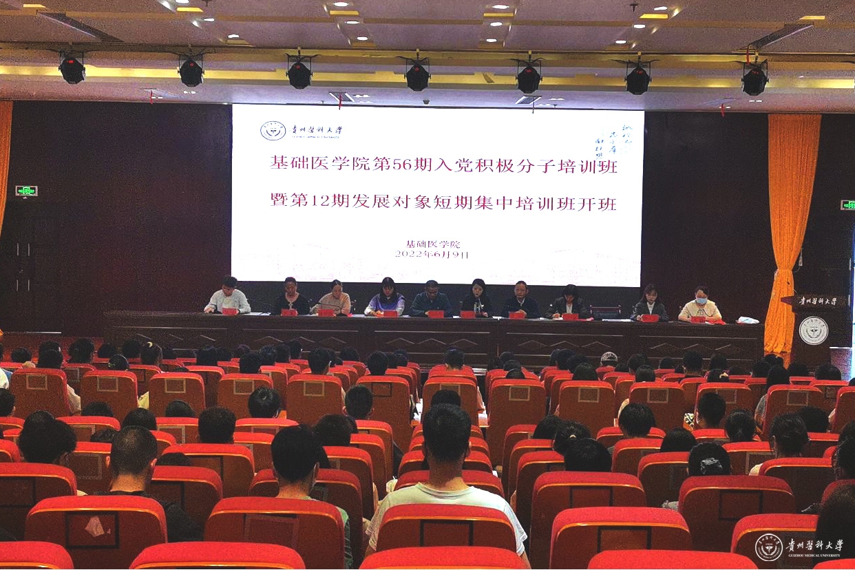 6月10日,基础医学院分党校第56期入党积极分子培训班和第12期发展对象短期集中培训班开班。基础医学院党委书记王妤煜,院长禹文峰,正处级组织员孟立科,副书记张贤出席。学生第一党支部书记刘旭、组织委员石静,学生第二党支部组织委员刘慧、纪检委员唐娇莲、党员刘亚及210名入党积极分子、57名发展对象参加了开班典礼。开班典礼由副科级组织员石静主持。
