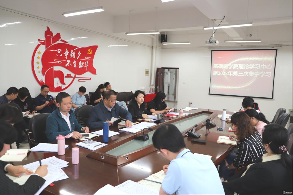 6月10日,基础医学院党委开展党委理论学习中心组第三次集中学习,深入学习贯彻习近平总书记近期重要讲话重要指示精神,认真学习领会省第十三次党代会精神和谌贻琴同志所作工作报告。学院领导班子成员、各科室、党支部书记、教研室负责人及全体辅导员参会。学院党委书记王妤煜主持会议。