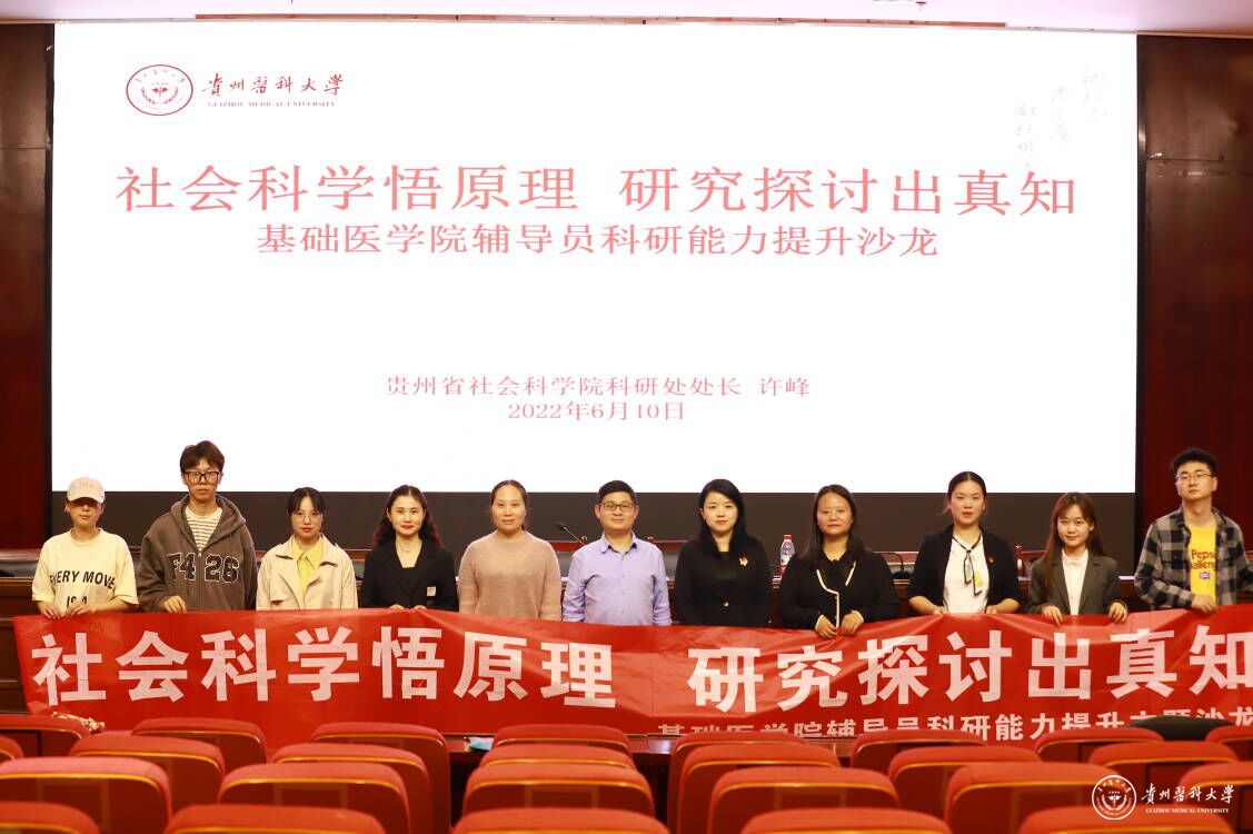6月10日,基础医学院举办“社会科学悟原理研究探讨出真知——基础医学院辅导员科研能力提升主题沙龙”。特邀贵州省社会科学院科研处处长许峰出席,基础医学院党委书记王妤煜,全体辅导员参加。沙龙由学生管理科副科长刘慧主持。
