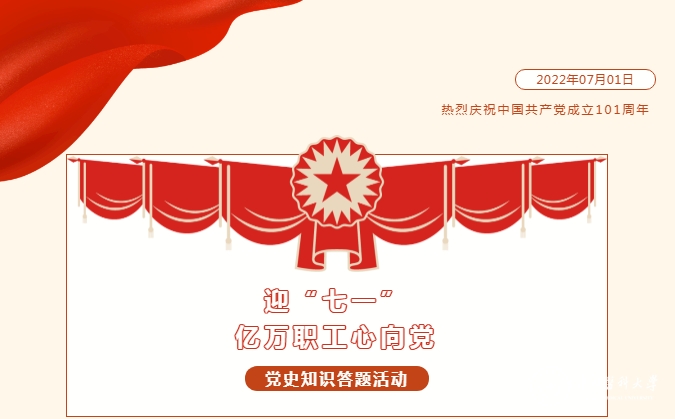 知所从来,思所将往,方明所去。此次迎“七一”党史知识竞答活动是在中国共产党成立101周年之际,校工会推动党史学习教育常态化、长效化的重要活动内容,力求将有形的竞答转化为无形的学习自觉,力争为学校高质量发展做出积极贡献,以优异成绩迎接党的二十大胜利召开!