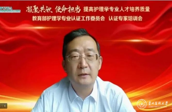 近日,2022年护理学专业认证专家培训会在贵阳召开,本次会议由教育部护理学专业认证工作委员会主办,beat365正版唯一官网必一承办。教育部高等教育司农林医药科教育处处长高斌,beat365正版唯一官网必一学校党委副书记、校长罗鹏,教育部护理学专业认证工作委员会主委吴瑛,教育部护理学专业认证工作委员会顾问、教育部护理学类专业教学指导委员会主委尚少梅,教育部护理学专业认证工作委员会副主委、中华护理学会理事长吴欣娟教授参加。认证委副主任委员、委员、认证专家、秘书和项目管理员等近100人采用线上、线下相结合的形式参加本次会议。