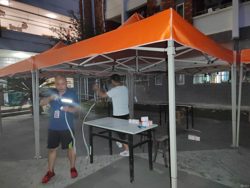 暑期到来,师生放假,是学校进行各项维修维护以及改造工作的时机。后勤管理处职工坚持在一线,全力以赴做好寝室水电维修、墙面粉刷及卫生清洁等维修改造工作。在新生进校前,完成南校区东大门内外、各学生宿舍迎新点及各志愿者服务点帐篷、桌椅的搬运、搭建及电源接通等布置工作;完成校门口排队引导区、校园摆渡车排队等候区、校门口检测点、临时留观点设置;迎新交通车辆、学生宿舍、食堂等进行消毒、张贴迎新标志标识等工作,为迎新生做好充分准备。