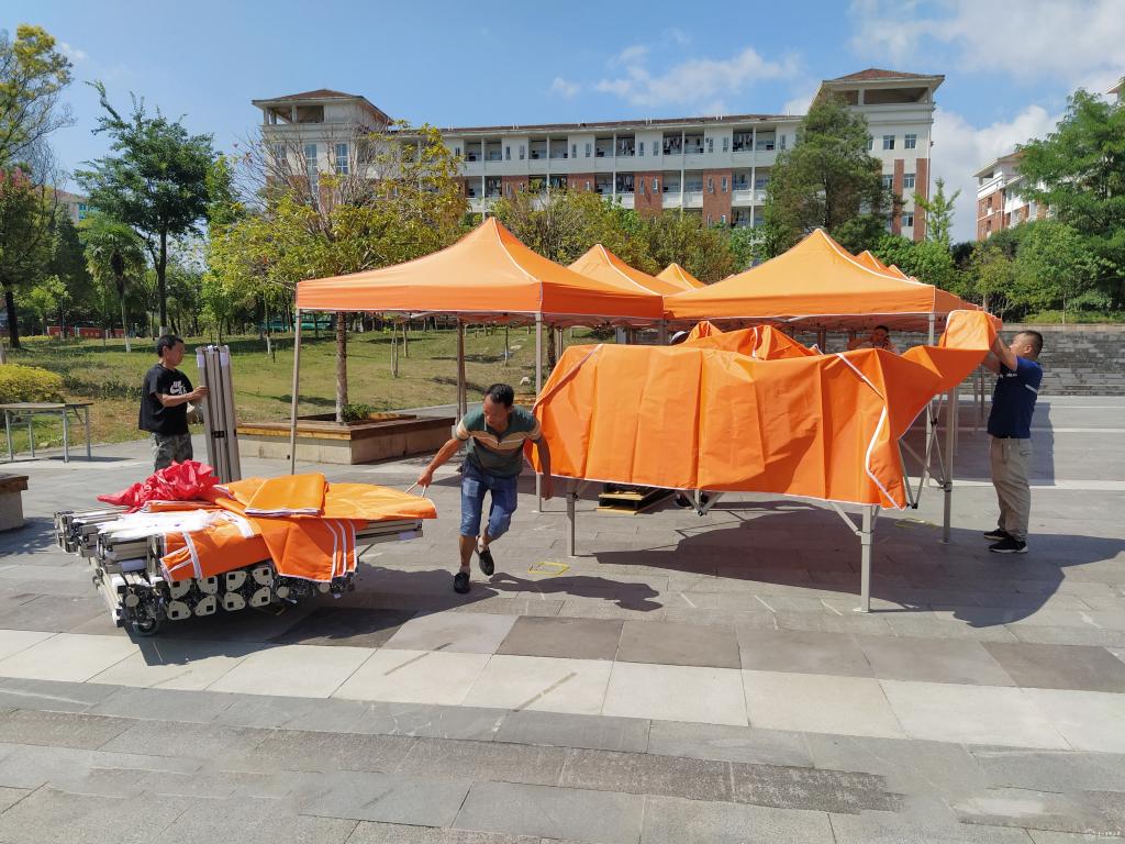 迎新期间,后勤领导班子到一线,带领广大职工积极协调,完成了5000余名新生进校时的扫码、测温、消毒和进宿舍时的再次测温登记、寝室钥匙的核对、分配;调配迎新车辆在火车站、高铁北站、高铁东站、金阳客车站、客车东站等迎新接站点共运行40余趟次,接运新生及家长2000余名;布置迎新接待及志愿者服务点25个,搭建帐篷260余顶,搬运、摆放桌椅150余套;为迎新一线工作人员、志愿者安排盒饭3000余份。在全体职工的努力、配合下,后勤管理处圆满完成了2022年迎新各项后勤服务保障工作。