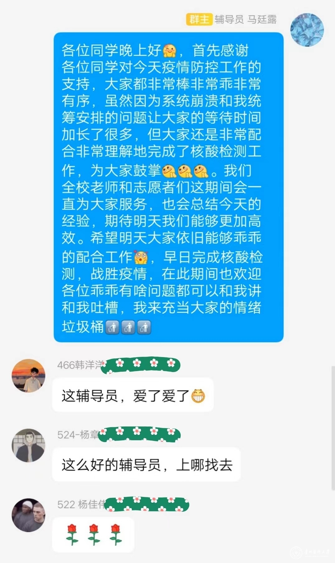 为切实配合学校严格落实落细各项防控措施,在工作中不断深化内部自查,激活网络化防控管理,通过宿舍区域全覆盖排查,核酸检测及核酸抗原检测群接龙,每日今日校园信息填报,持续做好学生疫情防控信息的登记、摸底、排查和上报,切实做好在校师生疫情防控精准摸排工作,按时按要求做到日报告、零报告,实时掌握在校师生的各项情况,确保在校师生“应检尽检、不落一人”。