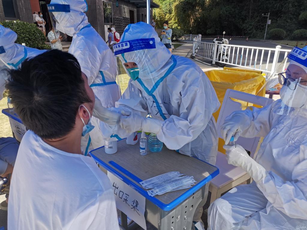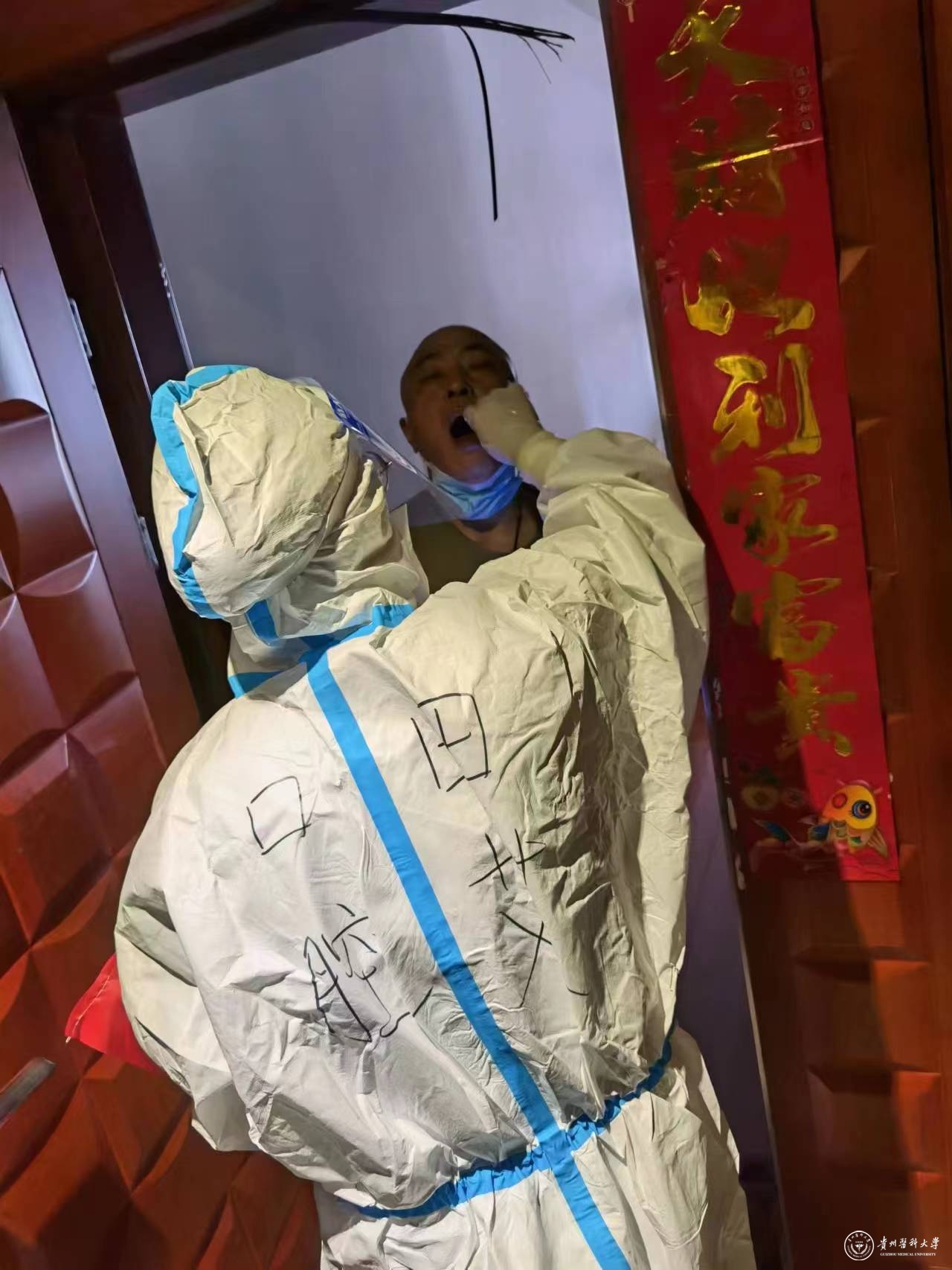 廖健、田艾、贾源源、程余婷等博士作为志愿者参与到社区核酸采集工作中,帮助完成小区高龄人员、卧床人员、行动不便的老人上门采样工作,并协助社区及物管开展小区内物资采购、搬运、消杀、发放等工作。在担任志愿者期间,廖健得知有位业主颞下颌关节脱位,在做好防护隔离后亲自上门为患者检查并做简单处理,随后陪同患者到口腔医院口腔颌面外科急诊处理。