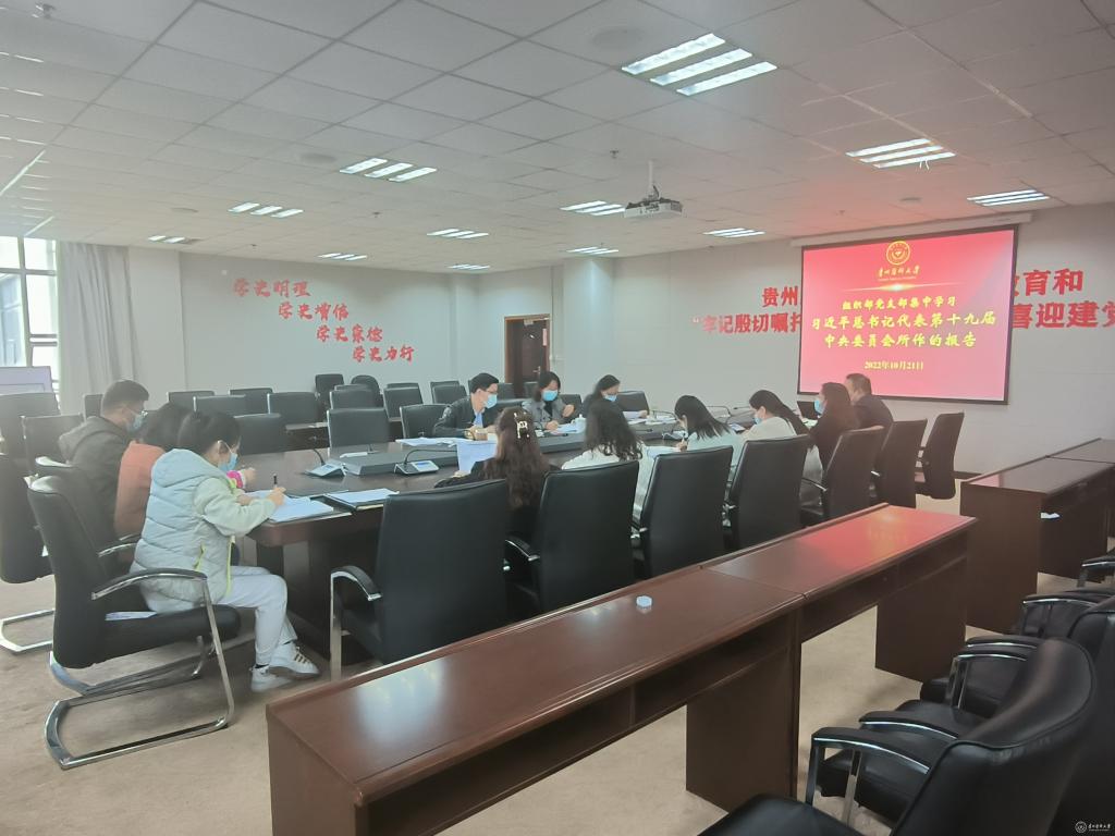 10月16日,组织部党支部全体党员在南校区收看党的二十大开幕会盛况。10月21日,支部全体党员在知雨楼4-13室开展政治理论学习,学习习近平总书记在党的二十大开幕会上所作的报告。11月3日,支部全体党员学习了党的二十大报告原文、党的二十大通过的《中国共产党章程(修正案)》原文、中共中央《关于认真学习宣传贯彻党的二十大精神的决定》,通过读原文、悟原理,使党的二十大精神在全体党员中入脑入心。