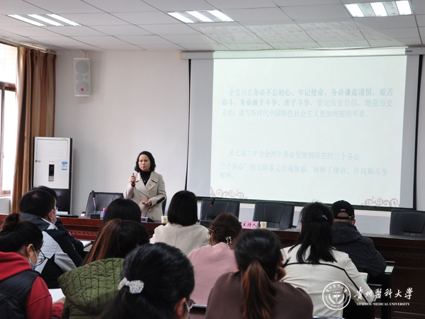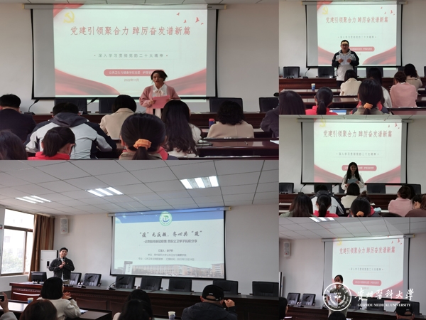 公共卫生与健康学院党委书记郑维薇在总结讲话中指出,在全校上下持续掀起学习党的二十大精神热潮之际,两家开展党委共建活动非常有意义,这是一次有高度、有深度、有温度的交流活动。杨英书记的宣讲内容丰富、深入浅出,充分结合医学教育高质量发展目标任务以及护理、公卫学科专业发展实际,具有很强的思想性、指导性和针对性。接下来,希望两家继续保持友好互往关系,以党委共建为契机,在党的建设、思政工作、人才培养、学科专业建设等方面进行更加深入的交流,开展更多形式多样的双联共建活动,合力提升党建工作质效水平。希望在座的党员教师和同学继续深入学习贯彻党的二十大精神和习近平总书记关于疫情防控工作重要指示批示精神,弘扬践行伟大建党精神和抗疫精神,充分发挥党员先锋模范带头作用,立足岗位教好书、育好人,立足所学服务社会、报效国家,切实为学校高质量发展、为奋力谱写多彩贵州现代化建设新篇章作出自己应有的贡献。
