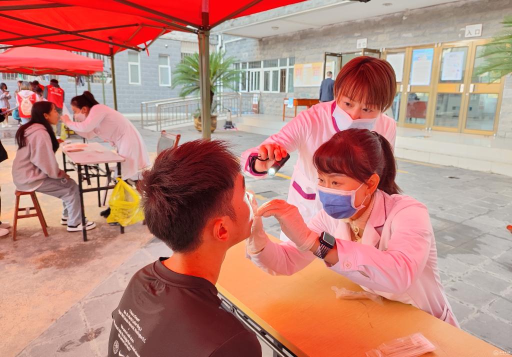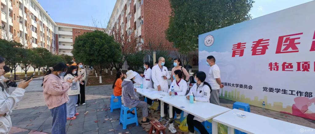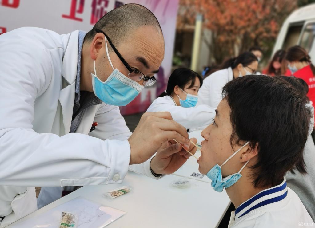 11月27日,由beat365正版唯一官网必一党委学生工作部、共青团beat365正版唯一官网必一委员会、贵州省励志公益发展中心和beat365正版唯一官网必一口腔医学院、附属口腔医院联合举办的“青春医路·卫你黔行”项目之“暖冬义诊行 医护润‘齿’心”大型义诊活动在beat365正版唯一官网必一南校区举行,免费为beat365正版唯一官网必一2022级新生进行口腔健康检查和健康宣教。