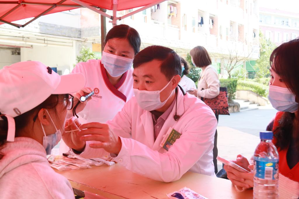 张军梅在活动前组织开展培训会并调动广大教职医护员工参与义诊积极性并作标准化操作流程培训。