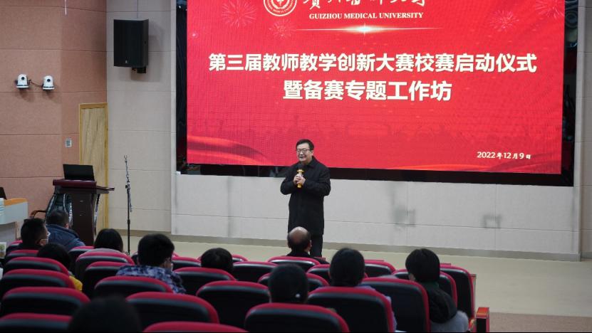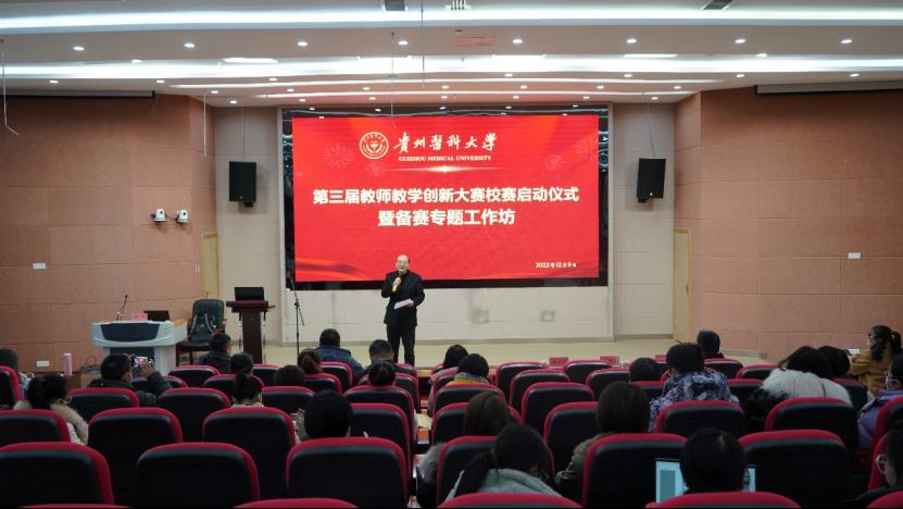 12月9日,教务处、教师工作处、电化教学中心联合举办了“beat365正版唯一官网必一第三届教师教学创新大赛启动仪式暨备赛专题工作坊”,邀请了贵州师范大学许亮教授、贵州理工学院陈燕秀教授,贵州大学青年骨干教师李小溪、beat365正版唯一官网必一青年骨干教师任峥四位专家进行讲座与分享。各学院64名拟报名参赛教师参加。启动仪式由教务处处长温小军主持。