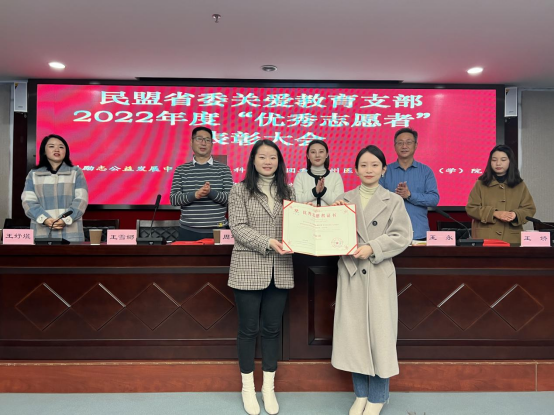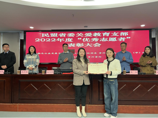 贵州省励志公益发展中心党支部书记王雪娜,民盟贵州省委关爱教育支部主委、贵州省励志公益发展中心秘书长周巧明对荣获2022年度“优秀志愿者”荣誉称号的同志表示祝贺,希望在新的一年里,继续在支医支教、教育扶贫及关爱空巢老人、留守儿童等领域与学院及医院深入合作,共同助力乡村振兴。