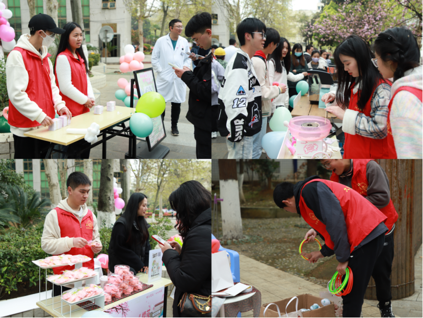 党课结束后,学生党员们主动参与到“情系贵医 心心相樱”活动中做志愿服务工作。