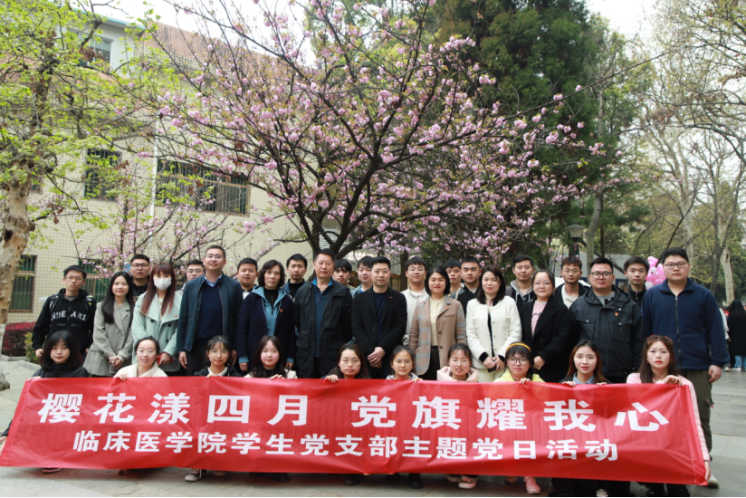 3月31日,临床医学院党委联合校离退休党总支、关心下一代工作委员会及校友会举办“樱花漾四月 党旗耀我心”主题党日活动。离退休处退休第六党支部杨成兰、胡建成,临床医学院副处级组织员马燕萍、临床医学院学生党支部全体党员及2020级本科入党积极分子代表参加。
