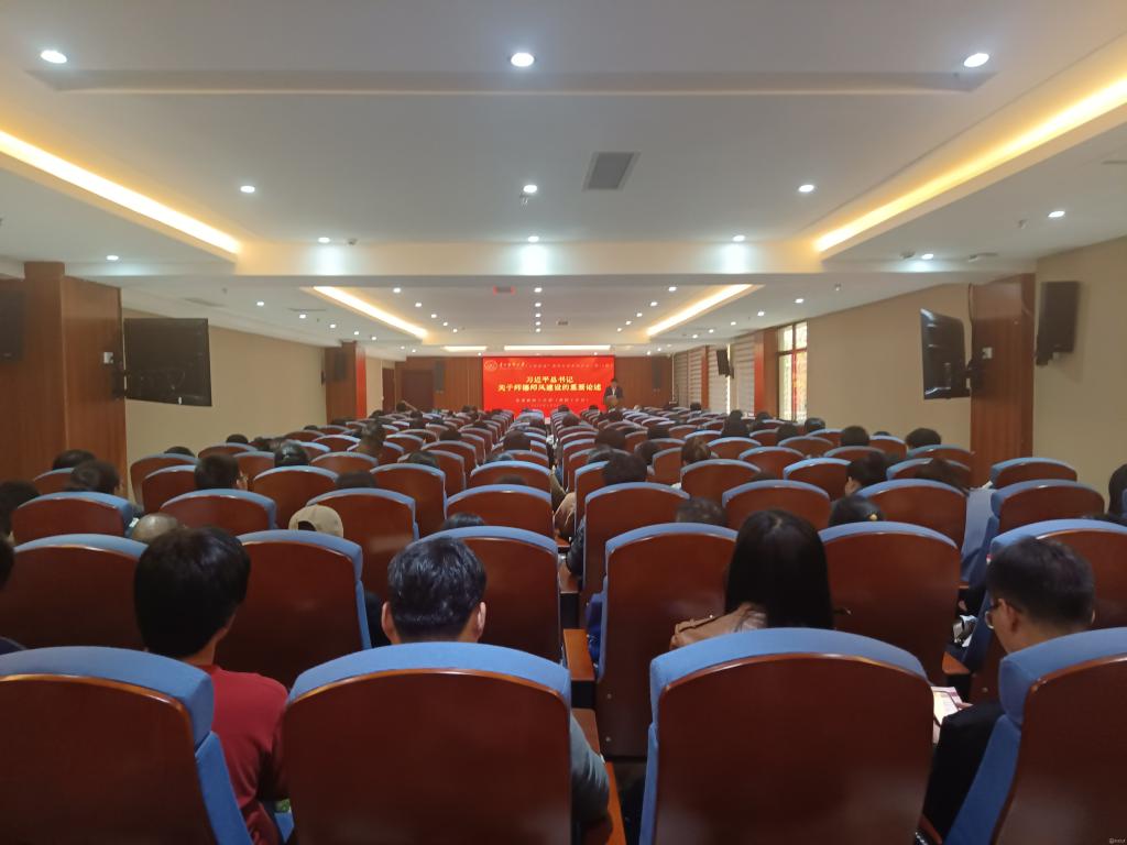 苟爽围绕“用初心使命增强责任担当”“用党的建设铸牢政治底线”“用规则制度树好规矩意识”和“用优秀文化涵养精神品德”四个方面深入解读,深刻阐述何为“师者”并勉励广大教师传承优秀师德文化、加强师德师风教育,做无愧于时代的人民教师。