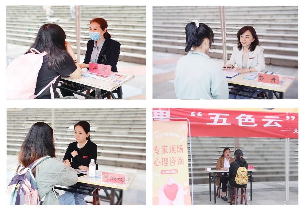 5月23日下午,心理中心主办,大学生心理健康协会和“温心之声”心理热线志愿者协会承办的心理“五色云”嘉年华活动在花溪校区喷泉广场举行。附属医院精神科副主任医师、国家二级心理咨询师及健康管理师吕翠受邀出席,beat365心理中心专兼职教师参与。