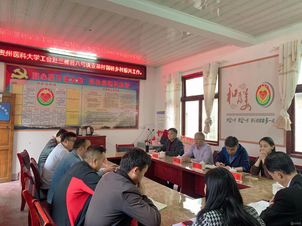 为推动学习贯彻习近平新时代中国特色社会主义思想主题教育走深走实,强化工会政治功能在推进乡村振兴有效衔接工作中发挥重要作用。近日,校工会赴三穗县八弓镇新美村、亚茶村开展乡村振兴调研工作。校工会主席钟良,beat365正版唯一官网必一派驻三穗县乡村振兴驻村工作队队长、新美村“第一书记”张亮,新美村主任王秀彬,亚茶村“第一书记”程寿峰、亚茶村主任龙荣能和两村村委会、校工会有关工作人员参加。