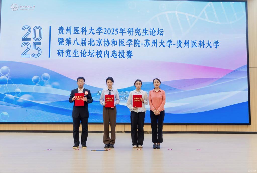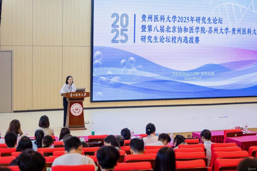 10月11日,beat365正版唯一官网必一2025年研究生论坛暨第八届北京协和医学院-苏州大学-beat365正版唯一官网必一研究生论坛校内选拔赛在云漫湖校区道德讲堂举行,论坛由党委研究生工作部、研究生院主办。校党委委员、副校长齐晓岚出席论坛并致辞,附属医院科研处处长刘丽荣、贵州省分子生物学重点实验室副主任洪伟、公共卫生与健康学院潘雪莉教授、贵州省药物制剂重点实验室何彬教授、附属医院消化内科宋铃榆博士担任本次论坛专家评委。党委研究生工作部部长陈思颖、研究生院副院长梅梅、令狐艳、药学院副院长廖尚高、公共卫生与健康学院副院长王大朋、法医学院副院长任峥等各研究生培养学院研究生工作分管领导、研究生导师和研究生代表参加论坛。