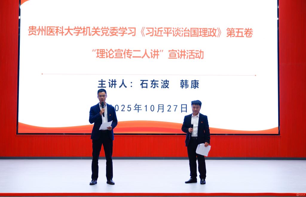 机关选派至三穗县驻村第一书记石东波、韩康两位同志以“理论宣传二人讲”的形式分享了学习《习近平谈治国理政》第五卷的感悟及党建引领乡村振兴工作的开展成效与实践经验。