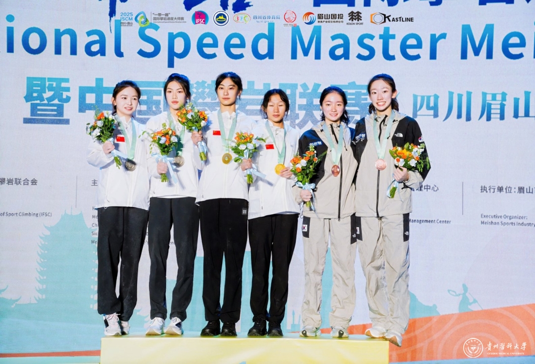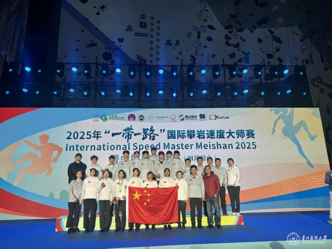 近日,在2025“一带一路”国际攀岩速度大师赛暨中国攀岩联赛(眉山站)中,beat365运动与健康学院2025级运动训练专业学生零宝霖、范竞月、黄日明、赵子谦凭借出色的竞技状态和顽强的拼搏精神,在赛场上取得了优异成绩,充分展示了beat365学子昂扬奋进的青春风采与竞技实力。