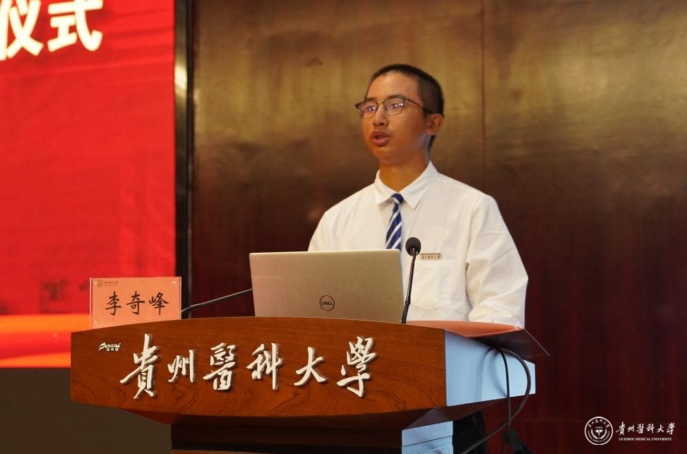 2021级“协和班”学生代表李奇峰同学发言。他表示,“协和班”让渴望学医的学生如沐春风,能真切感受协和精神,将有幸在“协和”专家、教授的专业指导下,领略知识海洋的宽广,感受奋斗的美好。作为“协和班”的一员,在未来将不断增强为中华民族伟大复兴而读书的志气,不负韶华,在奋进新征程中成为价值引领者;将理想融入国家事业,以奋斗和奉献来追梦圆梦,以成为卓越医学人才为奋斗目标,脚踏实地,奋勇前进;增强勇攀科研高峰和攻克新时期医疗卫生难题的勇气,不负青春,在研究真问题中成为创新开拓者。