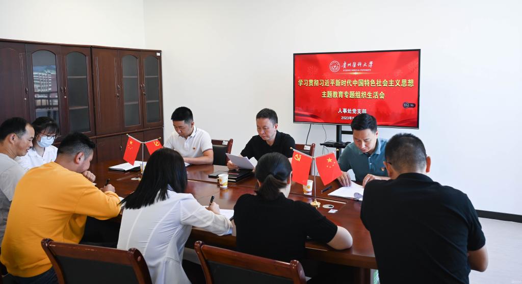9月5日,人事处党支部在云漫湖校区行政楼511会议室组织召开学习贯彻习近平新时代中国特色社会主义思想主题教育专题组织生活会,校党委副书记汤磊以普通党员身份参加,会议由党支部书记冯飞主持。