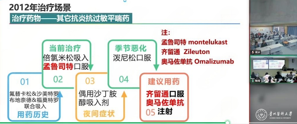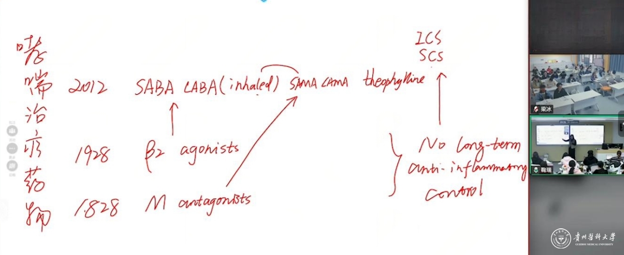 课程内容并未止步于历史回顾。鞠瑞老师巧妙地将历史演进与最新临床指南相融合,借助丰富的图表与临床病例,清晰阐释各类哮喘药物的作用机制、临床选择与应用策略。这种“以史为鉴,面向临床”的教学设计,不仅传授了系统知识,更着力于培养学生的临床逻辑与决策能力,引导学生深入理解“为何用药”,而非仅仅记住“用什么药”。