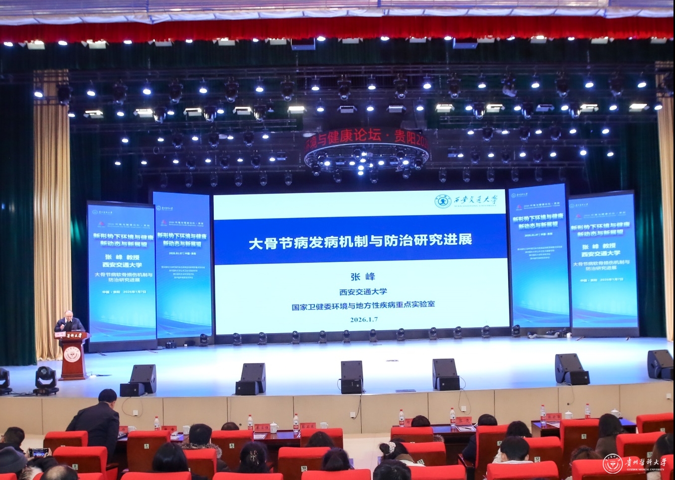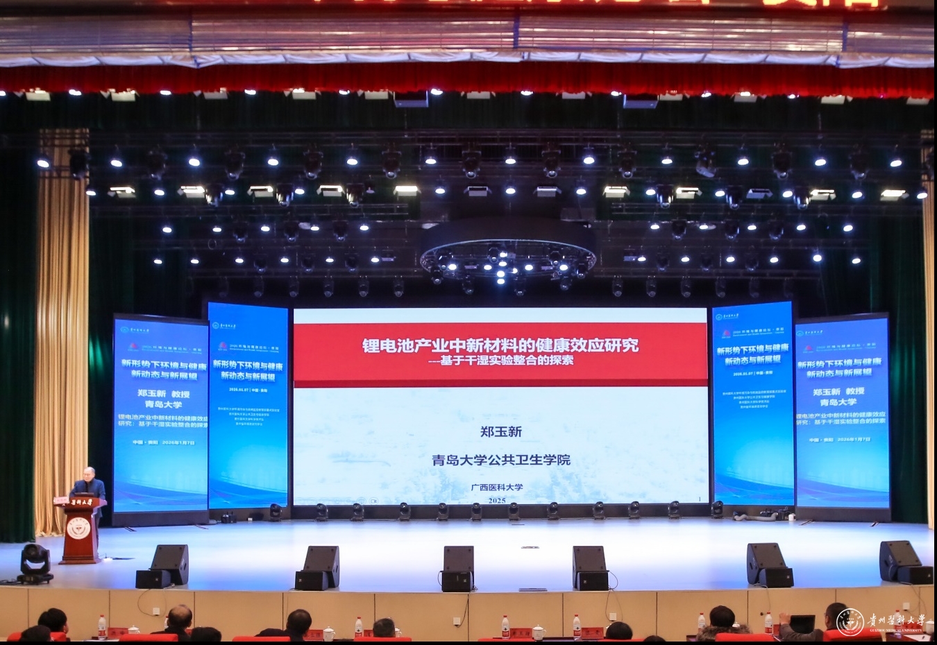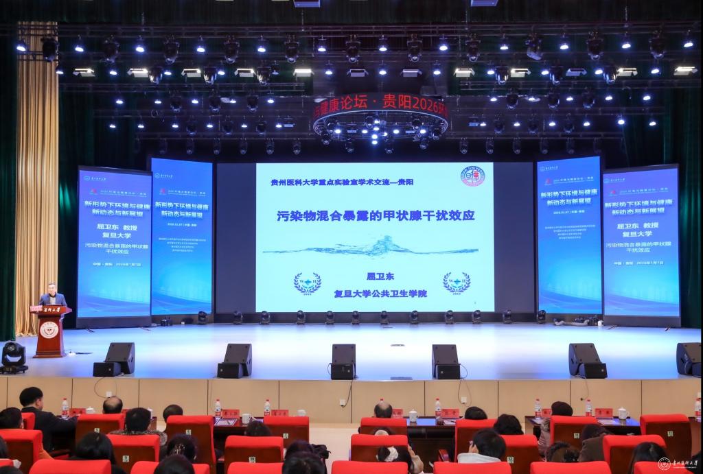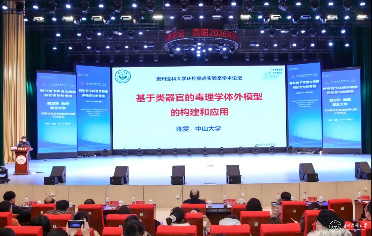 1月7日,以“新形势下环境与健康新动态与新展望”为主题的2026年环境与健康论坛在beat365云漫湖校区礼堂召开。论坛由beat365正版唯一官网必一环境污染与疾病监控教育部重点实验室、公共卫生与健康学院、科学技术处及贵州省环境诱变剂学会联合主办,邀请了青岛大学郑玉新教授、复旦大学屈卫东教授、中山大学陈雯教授、苏州大学秦立强教授、西安交通大学张峰教授作专题报告,共同探讨环境与健康领域前沿动态与发展方向。beat365师生代表400余人参加了论坛。
