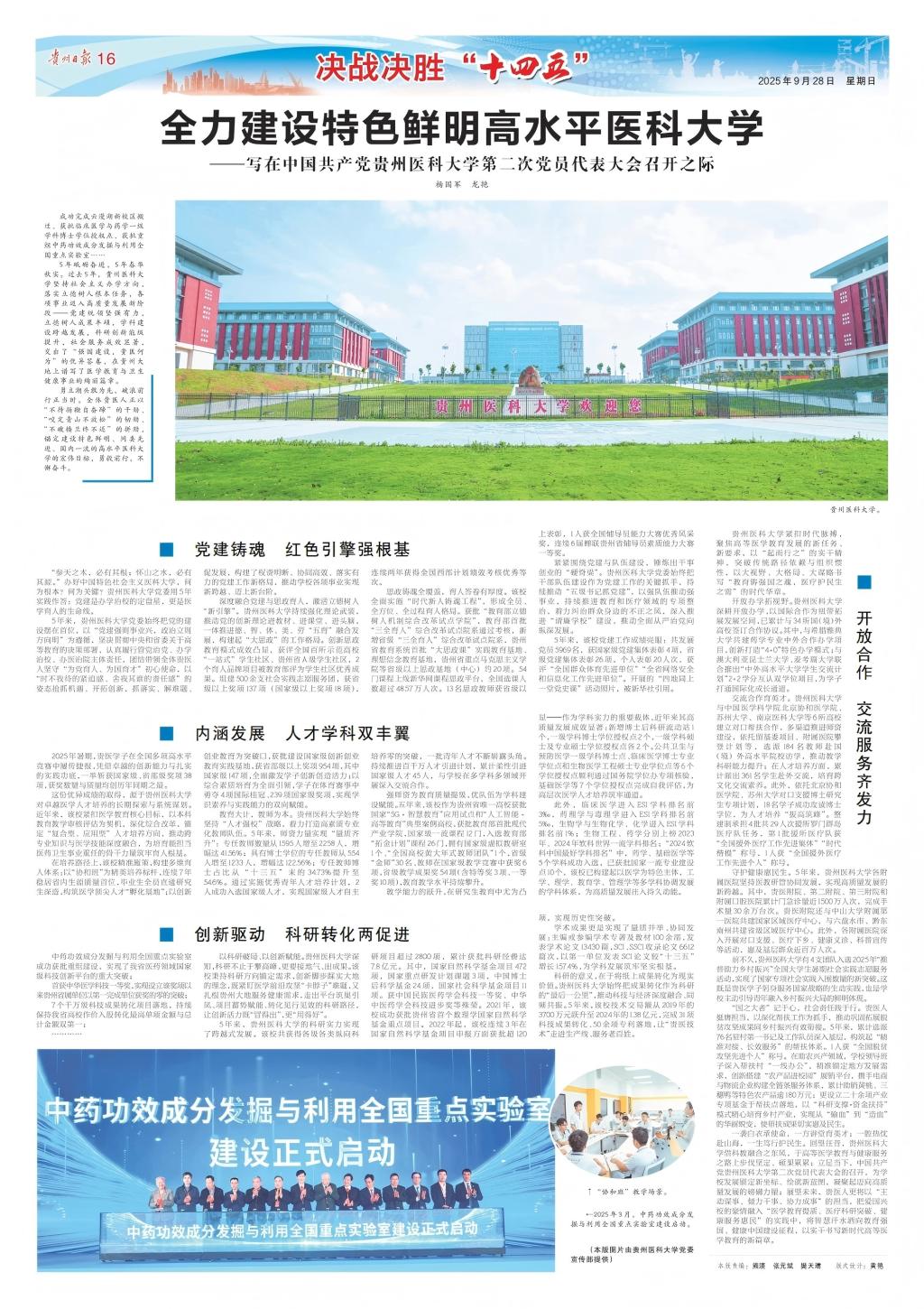 贵州日报(2025.09.28)全力建设特色鲜明高水平医科大学——写在中国共产党beat365正版唯一官网必一第二次党员代表大会召开之际