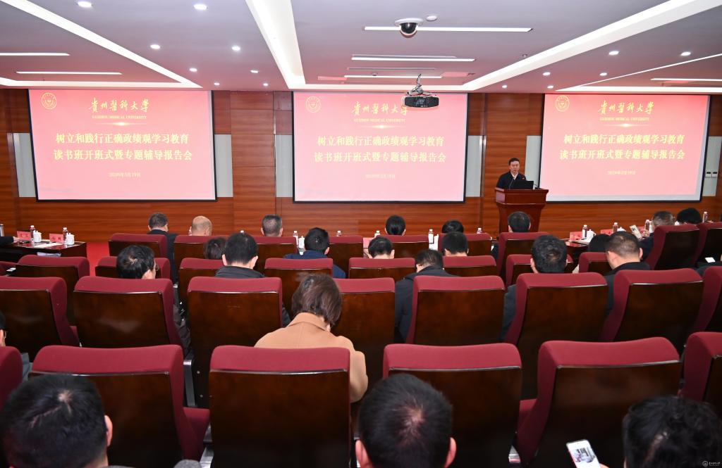 3月19日上午,学校树立和践行正确政绩观学习教育读书班开班式暨专题辅导在北京路校区临床技能中心举行。校党委书记汤磊作开班式动员讲话,校党委副书记张洁主持。此次读书班邀请到贵州省委党校党的建设研究部副主任王芳教授作专题辅导。